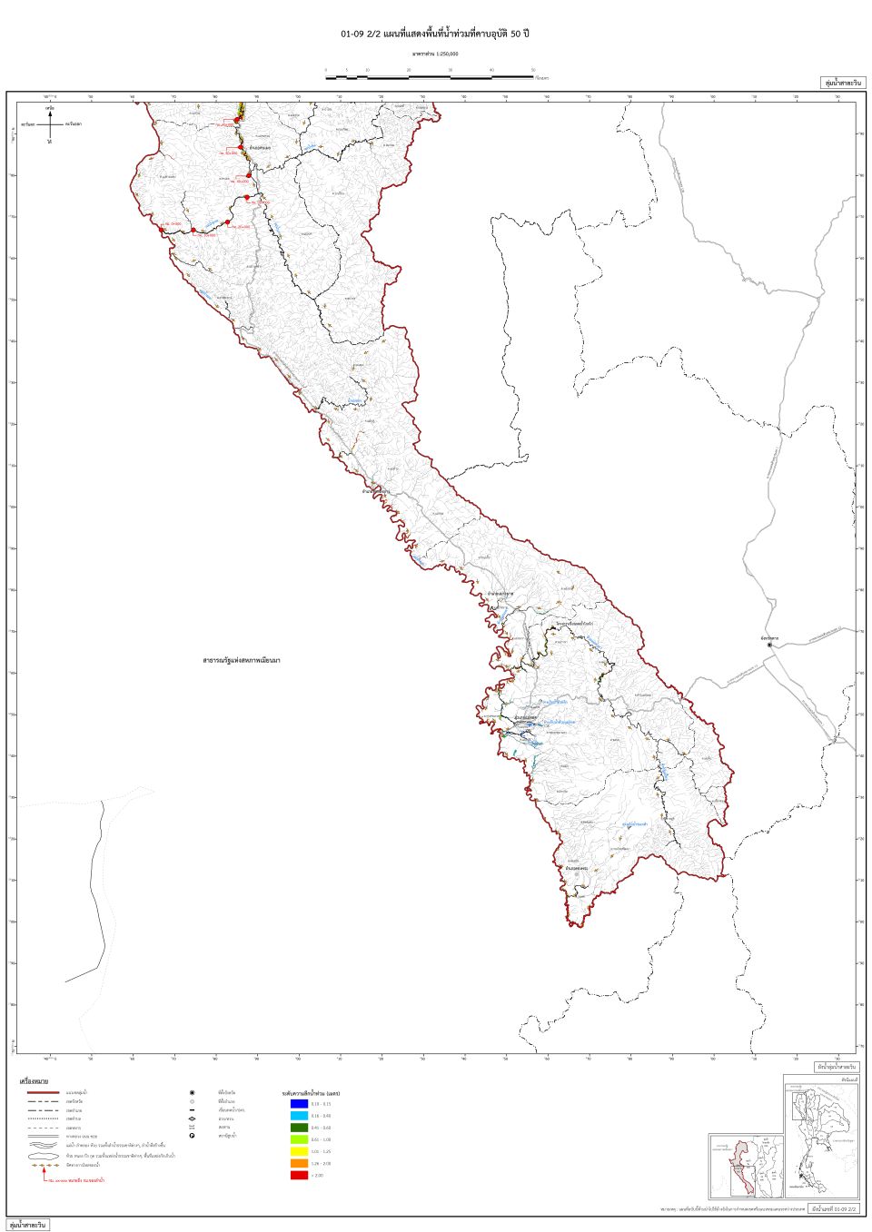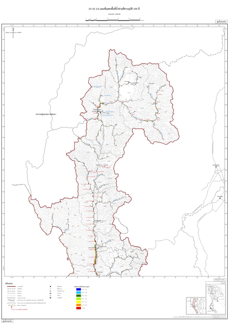 พื้นที่น้ำท่วมตามคาบอุบัติ 2-100 ปี จากผลการศึกษา |